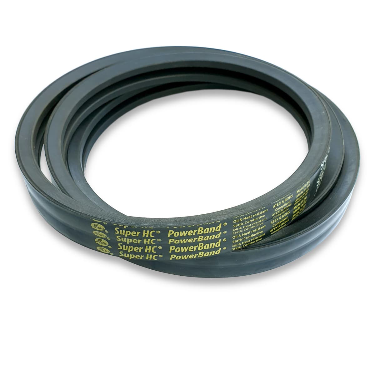 2-SPB 2800 Ld Gates SUPER HC banded V-belts consist of several individual belts with a shared cover plate to form a unit. The belt profile and transmitted power remain the same as for individual belts.