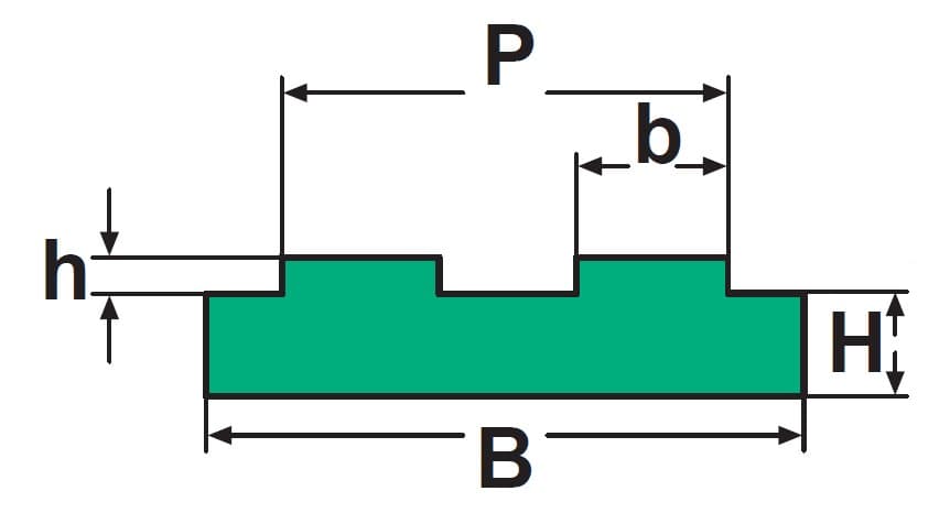2T (08B-2) - 35 × 20 mm (PE-1000, L = 2000 mm)