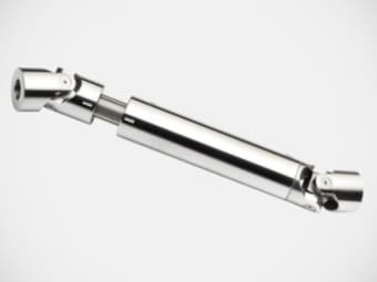 Propeller shaft with a slip joint according to DIN 808-G with plain bearings or DIN 808-W with roller bearings. The construction is actually two simple universal joints connected with a shaft and a slip joint shaft. They are designed for small and medium loads with connection to a cylindrical shaft with a key or to a square shaft.