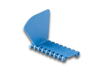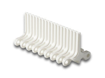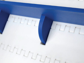 These elements serve as partitions on the upper side of the belt. They are inserted instead of usual flat segments and are a permanent part of the belt. Plastic flights enable the inclined transport of objects and prevent them from slipping or falling off the belt. |