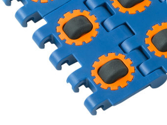 The belts can be made to almost any length and width. They are driven by sprockets, which also take over the function of guiding the modular belt. Application is possible in straight, radius and spiral direction. A wide range of accessories is available.