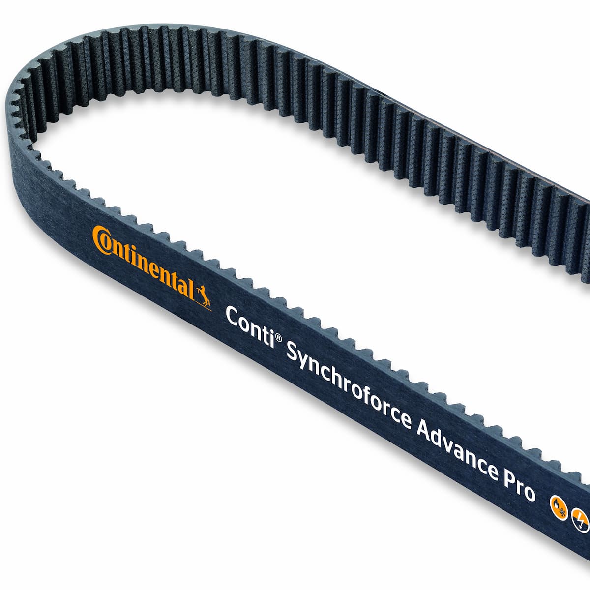 The CONTI SYNCHROFORCE ADVANCE PRO belts are made of an aramid-fiber reinforced EPDM rubber, providing exceptional temperature resistance, with an aramid-cord tension member. They offer a significantly extended service life compared to the previous chloroprene generation (in the ContiTech portfolio, they replace the former CONTI SYNCHROFORCE CXA series).