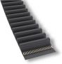 Polyurethane open-ended timing belts in HTD profile are made of thermoplastic polyurethane, which has high dimensional stability and wear resistance, and steel tensile fiber, in special cases aramid or stainless steel.