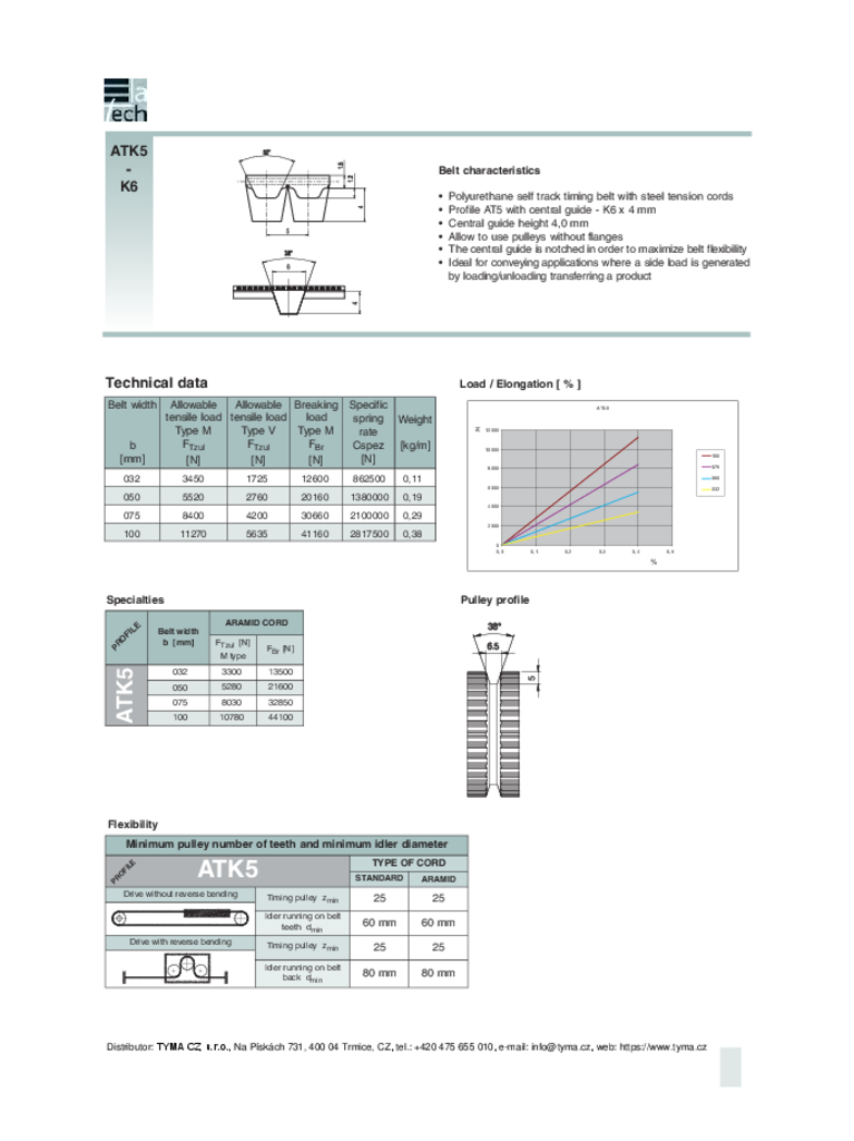Technical Data and Characteristics of ATK5 - K6 Belts