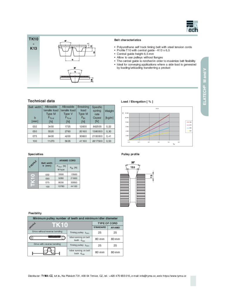 Technical Data and Characteristics of TK10 - K13 Belts