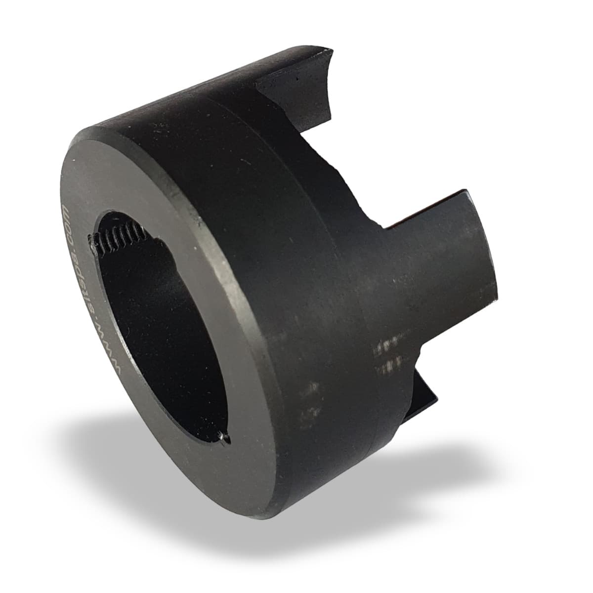 SIT TRASCO are torsionally flexible, puncture-proof shaft couplings with two metal hubs with front claws and a polyurethane element. They transmit torque through pressure-stressed elastic star-shaped buffer which absorbs shock and torsional vibration. These GRMB hubs are made of cast iron with Taper Lock bore in B1 version with external mounting or B2 version with internal mounting.