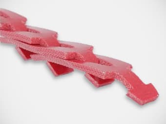 The belts have a special construction, the individual links are made of custom polyurethane elastomers reinforced with multiple plies of polyester fabric. The belts are characterized by long service life, high temperature and chemical resistance.