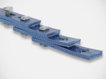 SUPER-T-LINK belts, as well as NUT-LINK belts, are made up of separate links that are connected by special metal studs. They are open-ended and can be easily joined to any required length. They work without loss of performance in a wide temperature range from −40°C to +116°C and are dimensionally compatible with standard V-belts. They are capable of transmitting higher power than POWER TWIST link belts, but they do not have a smooth outer surface and cannot be used in transport applications. They are mainly used as drive belts – as a replacement for narrow V-belts SPZ, SPA, SPB and SPC. |